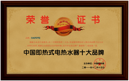 近日,德恩特品牌又被“中國即熱網(wǎng)”(www.jrrsq.com)評(píng)為“中國即熱式電熱水器十大品牌”,并榮獲第二名。