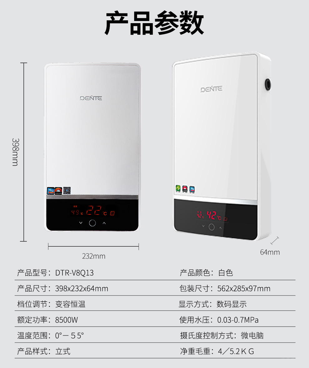 德恩特 DTR-V8Q13 家用恒溫機 多路供水